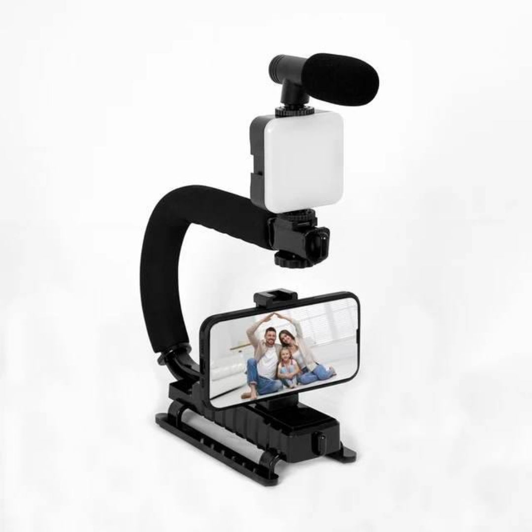 Con su estabilizador ergonómico en forma de U/C, tendrá firmeza y control en cada toma. Un diseño ligero y portátil que te acompañara a donde vayas.