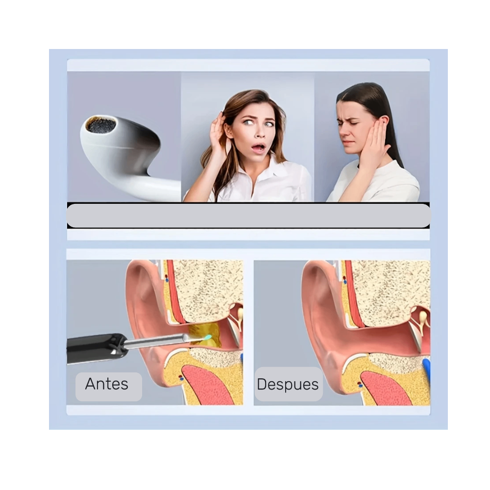 - 📹 Visualización en tiempo real: Mira dentro de tu oído con la cámara HD para una limpieza segura.