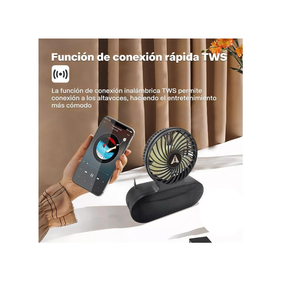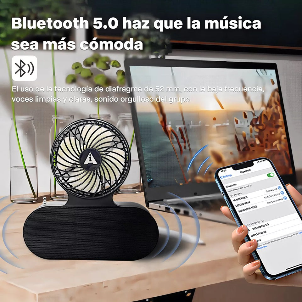 🔊Multifuncionalidad: Altavoz Bluetooth, linterna LED, ventilador, radio FM, lector de tarjetas TF y puerto USB.