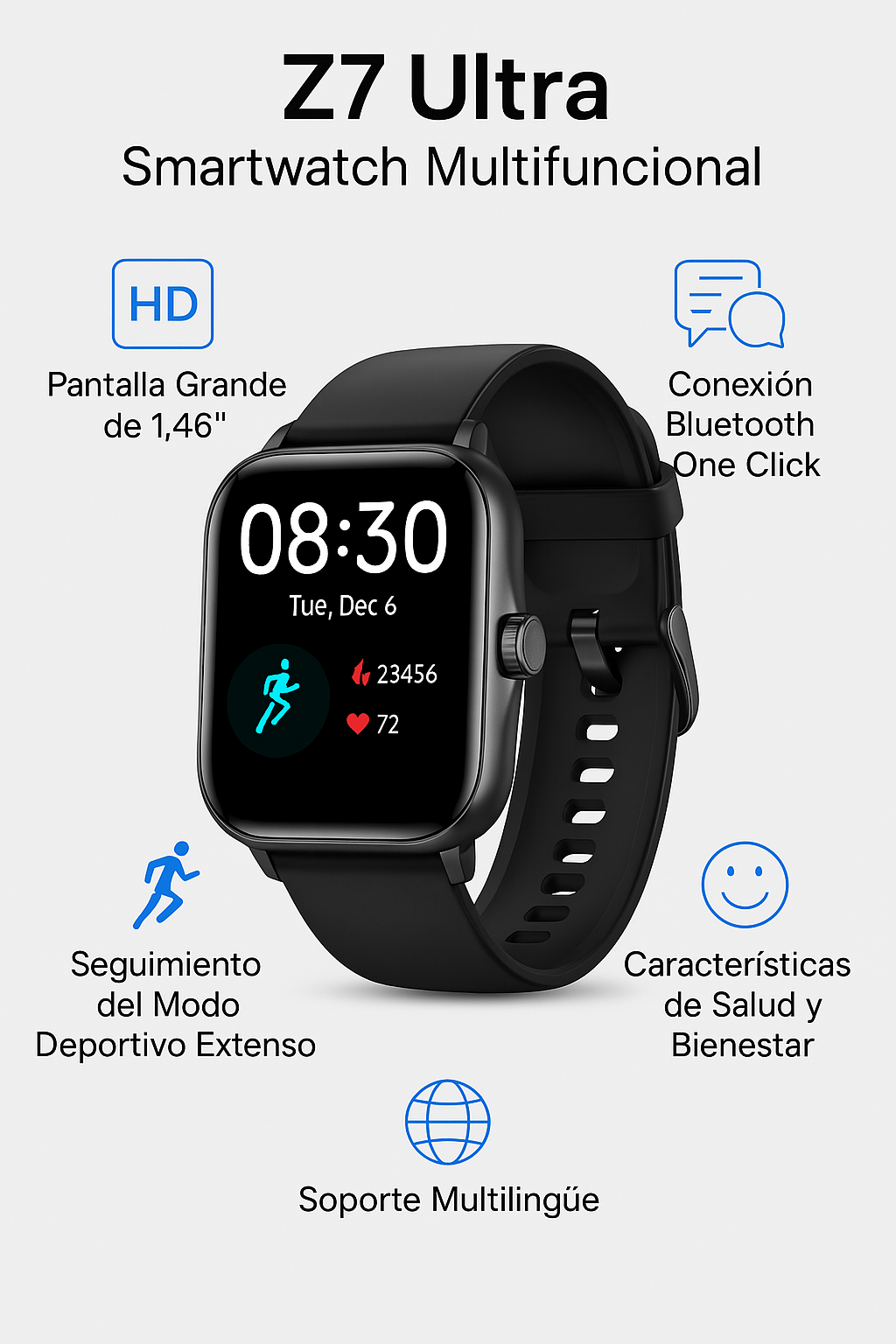 Nuestro SmartWatch combina salud, estilo y tecnología en tu muñeca.