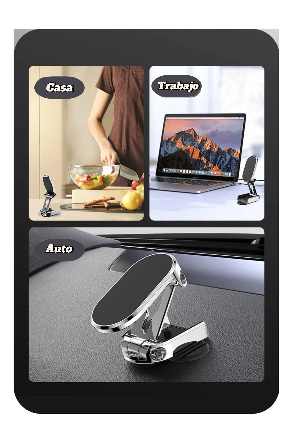 Nuestro soporte magnético plegable ofrece máxima seguridad y comodidad con 6 imanes N52 que no interfieren con la señal.